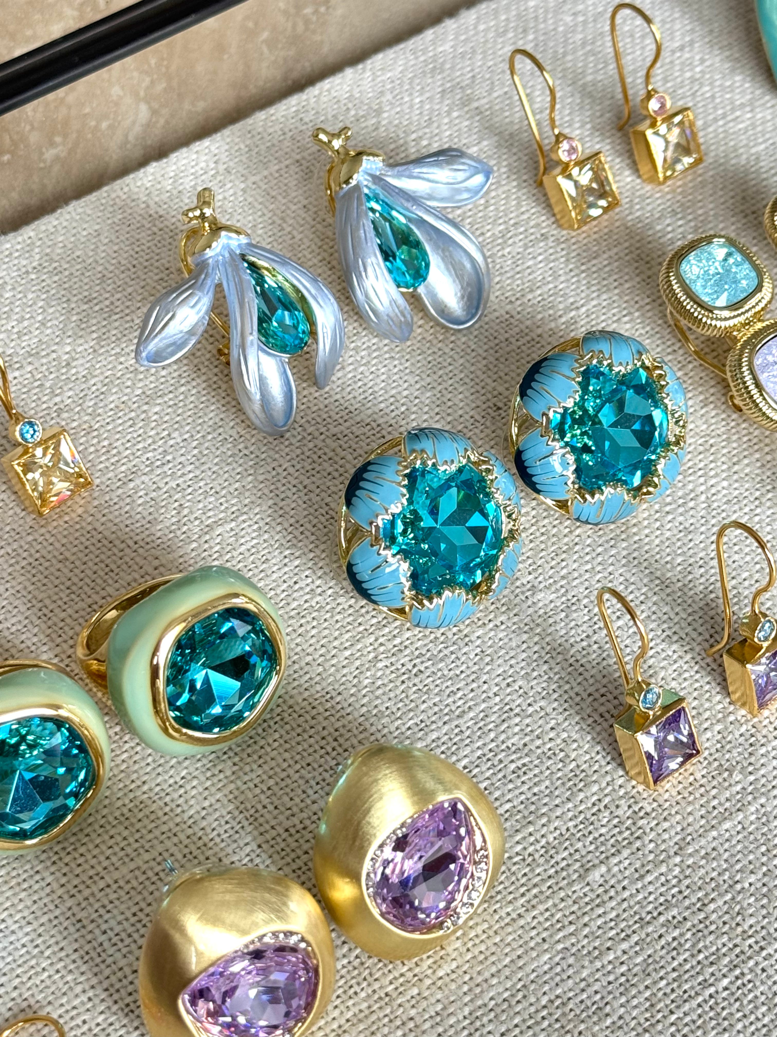 Avoid direct contact with perfume, cream, and alcohol-based products. Please also remove your jewelry before swimming, showering, or entering the sea or pool, as exposure to water and chemicals may affect the stones and plating. To keep your piece in the best condition, gently wipe it with a soft cloth after each use.