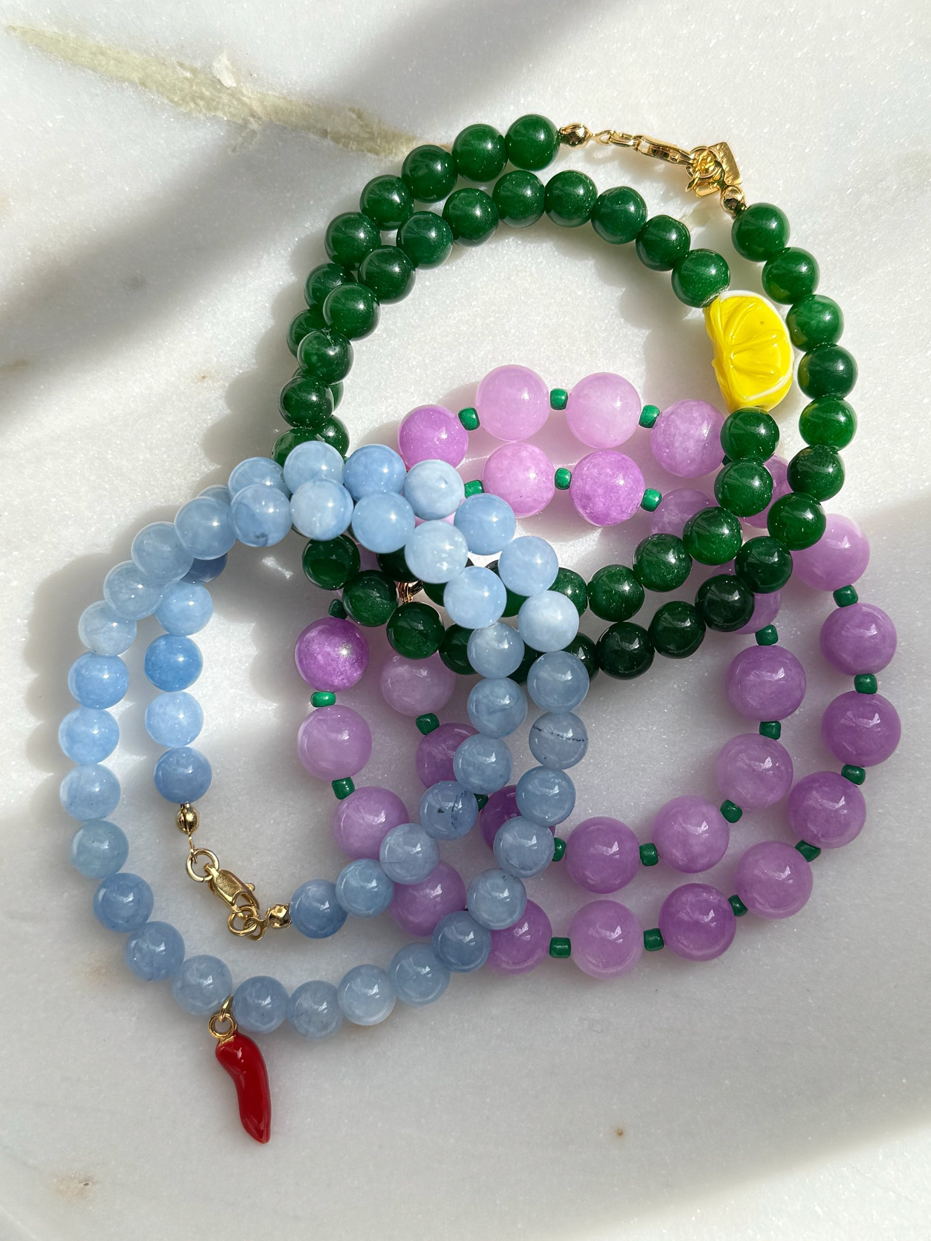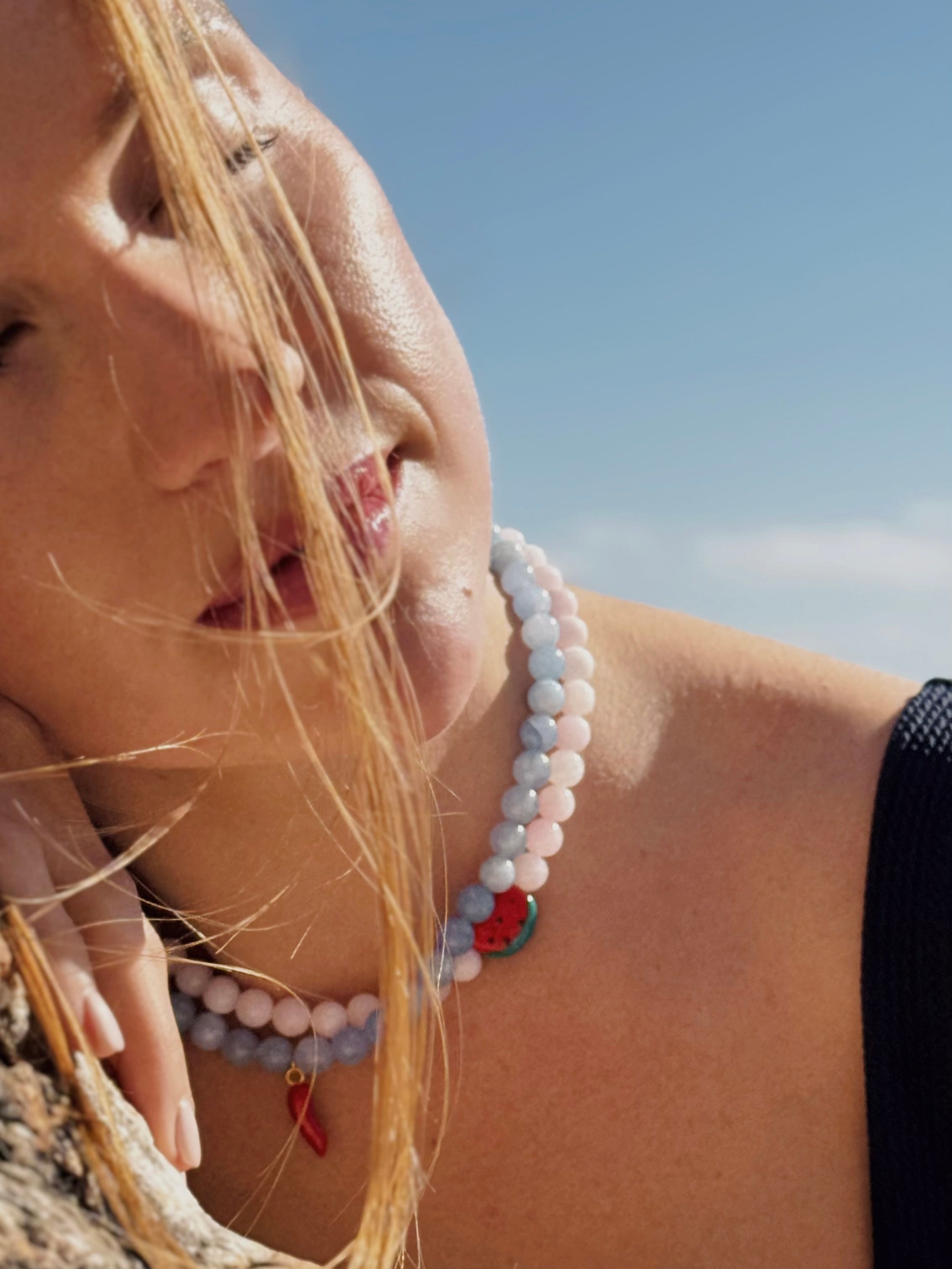 Avoid direct contact with perfume, cream, and alcohol-based products. Please also remove your jewelry before swimming, showering, or entering the sea or pool, as exposure to water and chemicals may affect the stones and plating. To keep your piece in the best condition, gently wipe it with a soft cloth after each use.